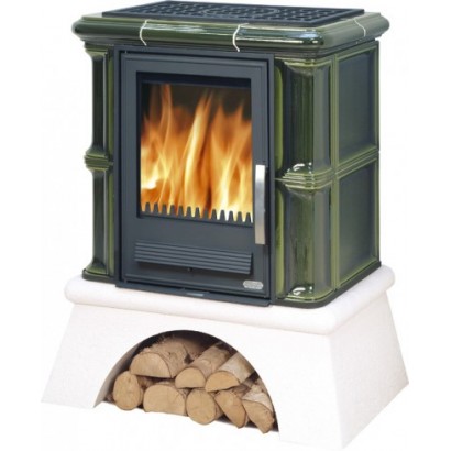 Кафельная печь Bavaria L - вставка чугунная, с прямым цоколем, бутылочное стекло, с теплообменником