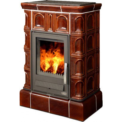 Кафельная печь Britania K - вставка комбо, кафельный цоколь коричневая