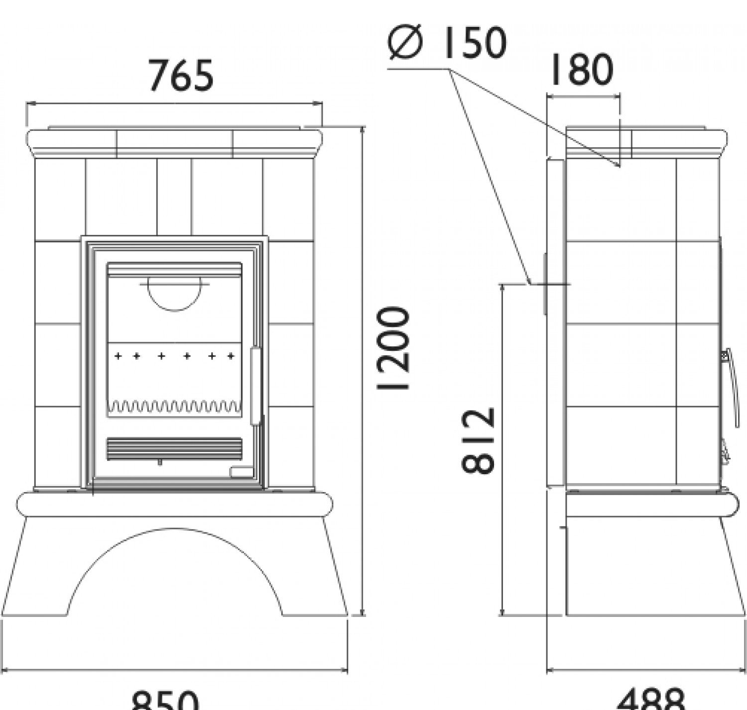 Кафельная печь Britania на белом цоколе. Облицовка печи Britania произведена из печного кафеля. Печной кафель славиться своими способностями накапливать тепло и долгое время его сохранять. Еще одно преимущество кафельной облицовки заключается в легком уходе за ней, Вам не потребуются специальные моющие чистящие свойства, достаточно просто протереть ее влажной губкой.