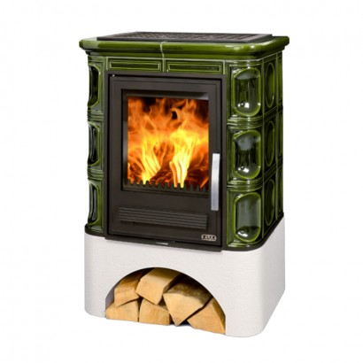 Кафельная печь Marina LP вставка чугунная белый цоколь зеленая