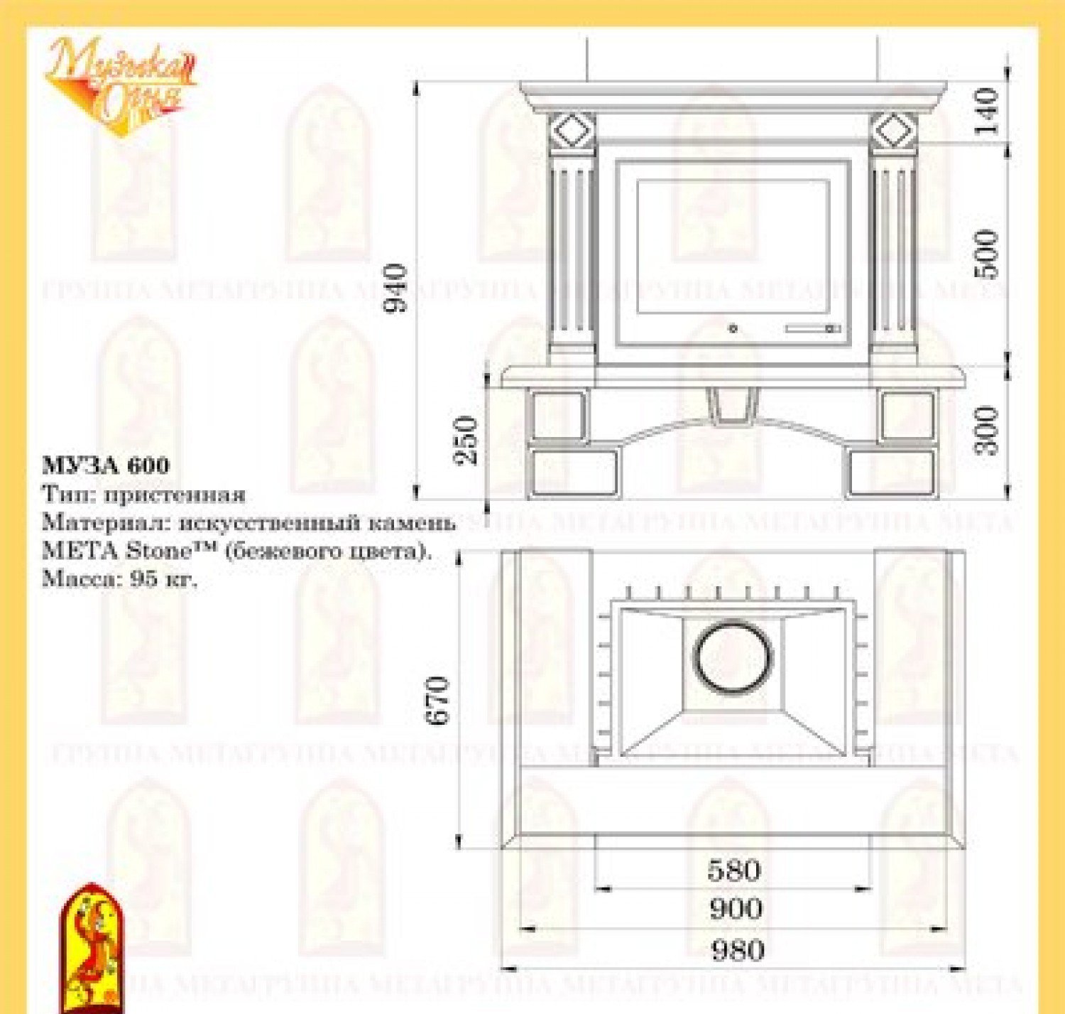 Облицовка Мета МУЗА 600 подходит для топок Мета Аврора и Эльба 609.
