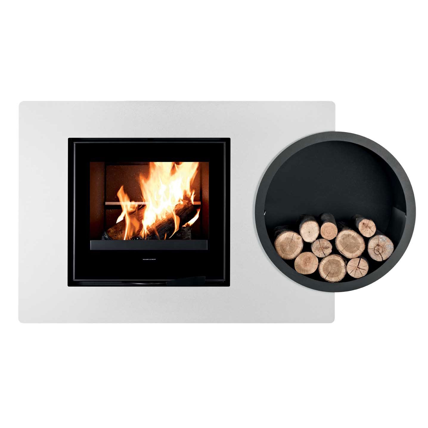 Модель из стали черного или белого цвета. Под топку Palatium 3. Удобная черная дровница, встроенная в боковой части камина.