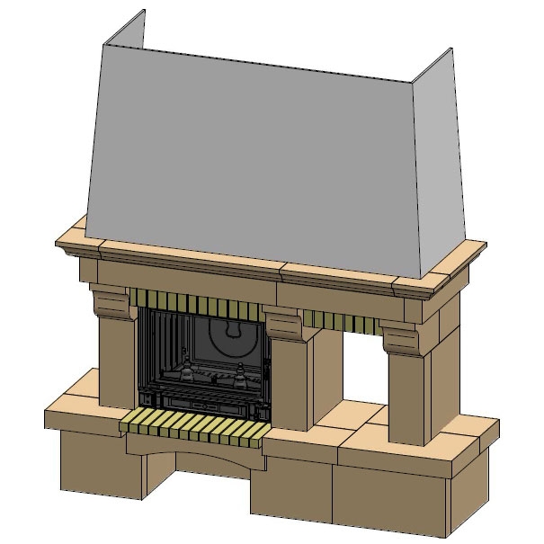 Пристенный камин из камня Luberon и желтых кирпичиков.