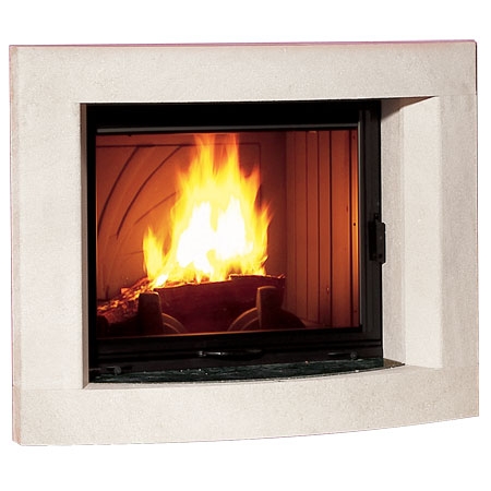 Полувстроенный камин из белого Edelroc® + пластина из мрамора Bl.Marquina.