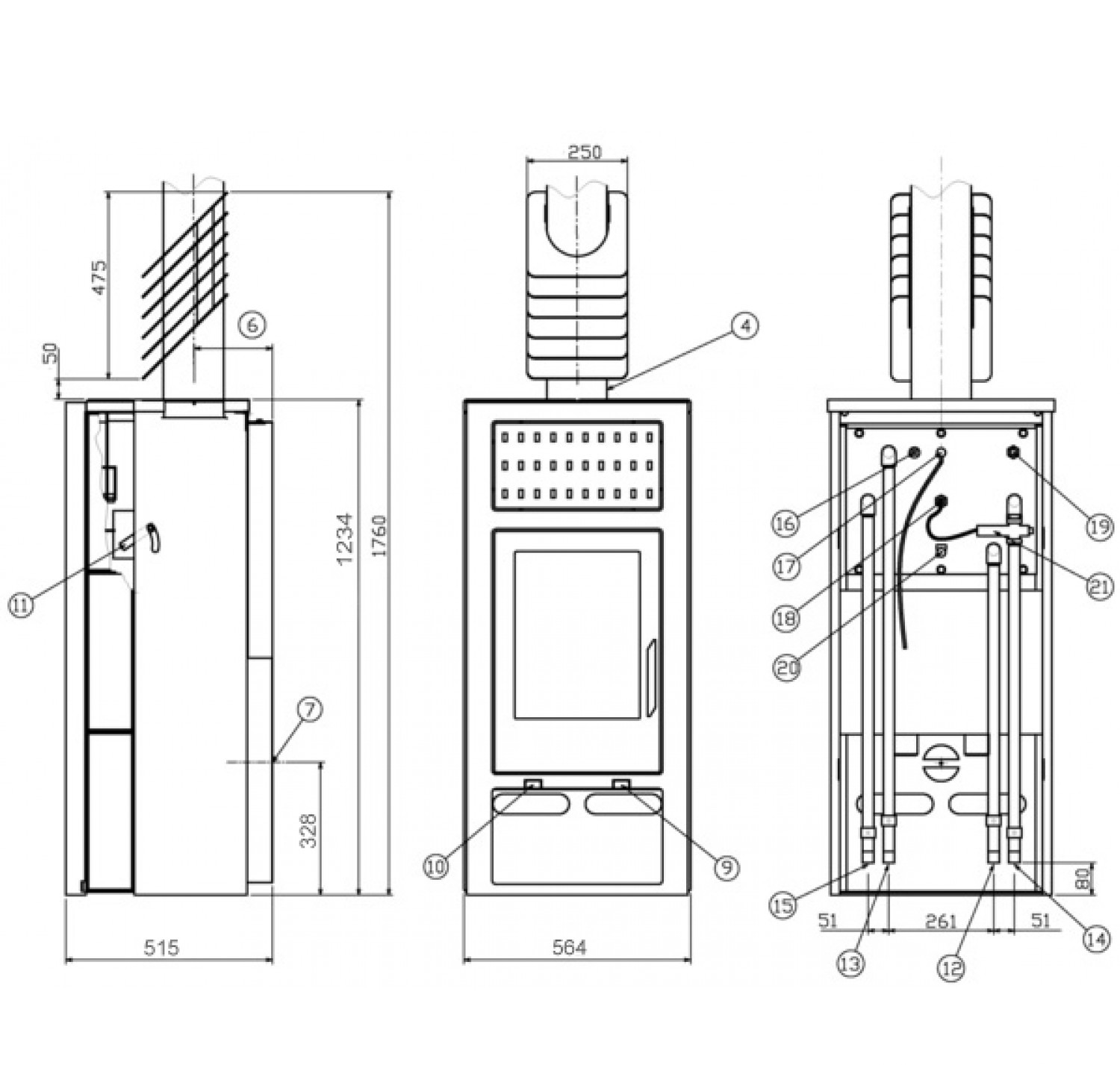 Печь камин Belt 10 Аква относится именно к таким печам «с водяной рубашкой» и может отапливать до 220 куб. метров полезной площади. В качестве топлива рекомендовано использовать сухие дрова, а также древесные или угольные брикеты. Расход топлива составляет от 1.9 до 2.9 кГ в час. Мощность этого камина 10 кВт, из которых 6 кВт приходится на теплообменник. Печь имеет прямоугольный стальной корпус, обшитый пластинами из натурального камня талькохлорита и верхнее подсоединение к дымоходной системе.