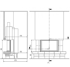 Двусторонний (сквозной) печь-камин с задним нижним подключением 2 теплового класса, для больших помещений.
