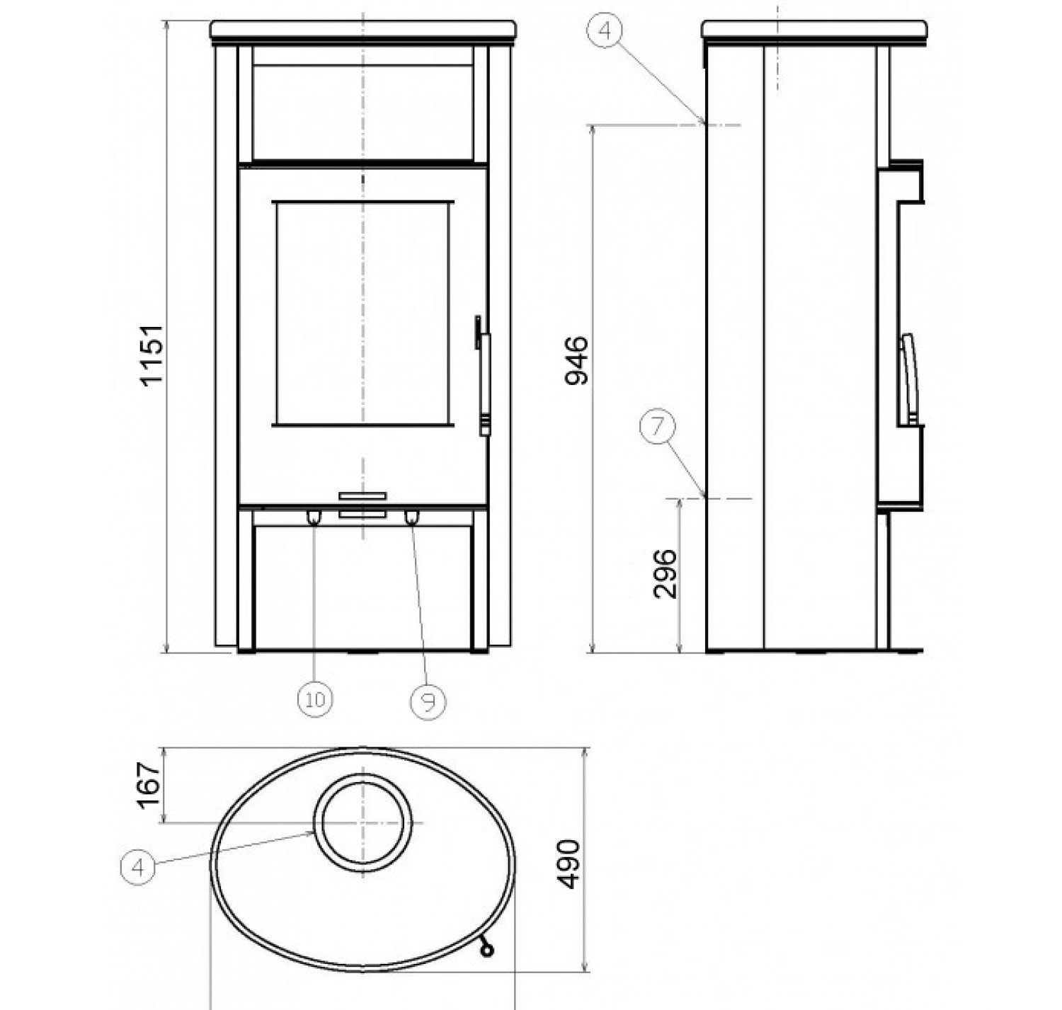 Корпус печи покрыт специальной краской, выдерживающей высокие температурные нагрузки. Корпус данной модели имеет цилиндрическую форму, поэтому ее можно поставит не только возле стены, но и в углу помещения. Island 5 — это хороший выбор для владельцев небольшого дома.