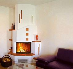 Печь-камин Максетте по внешнему виду ничем не отличается от элегантной кафельной печи, но топка в ней значительно больше. Максетте имеется в угловом или пристенном варианте.