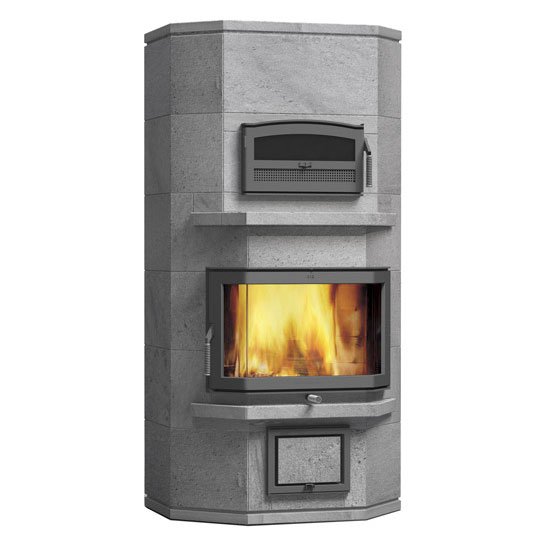 Пристенный печь-камин с задним нижним подключением 2 теплового класса, для больших помещений. С духовкой.