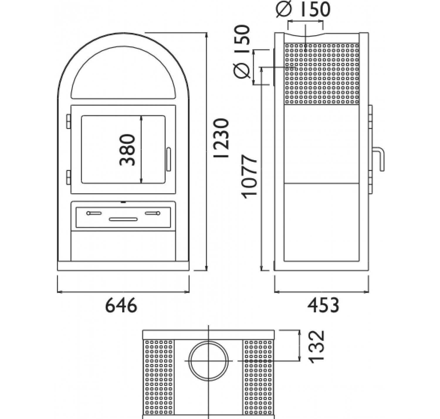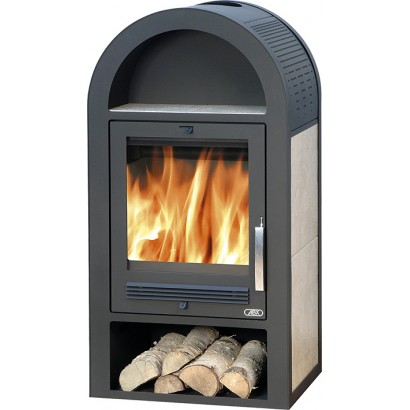 Преимуществом печи является наличие полочки для разогрева пищи. Чешская печь-камин имеет высокий КПД засчет применения системы двойного дожига, когда в топку подается не только первичный воздух для горения, но и подогретый вторичный и третичный воздух, который сжигает остатки несгоревшего топлива.
