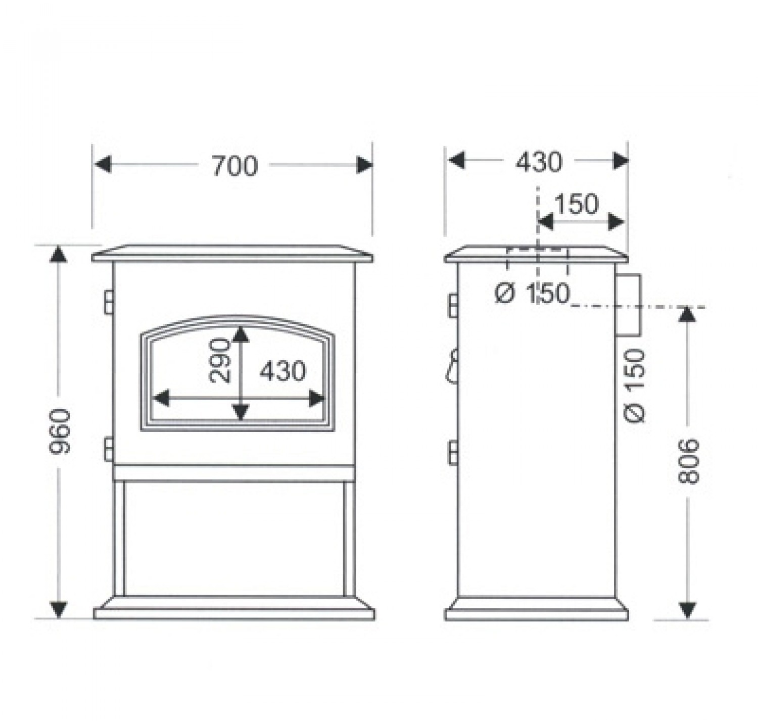 Отопительные печи имеют камеру сгорания полузакрытого типа. Они работают на дровах и/или на брикетах лигнита. Эти устройств предназначены для установки у стены и могут переноситься на другое место. Соединение с дымоходом производится псредством труб, соответствующих нормам NFD 35-302 и выполненных из эмалированной или нержавеющей листовой стали. Для этих отопительных печей соединения должны выводиться в индивидуальную дымовую трубу.