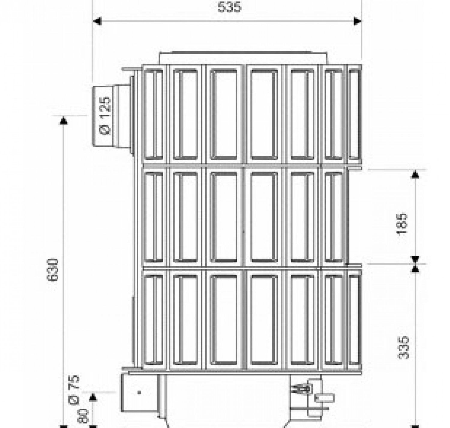 Герметичная отопительная печь с подключением воздуха с улицы. Облицовка печи из аккумулирующего материала для увеличения теплоотдачи. Есть возможность подогрева блюд на верхней плите. Удобное управление работой топки (1 ручка регулирует подачу всех воздушных потоков).