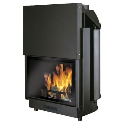 Каминная топка для закрытой системы со спиралью терморегуляции и предохранительным клапаном. Современная дверца с поднятием вверх.