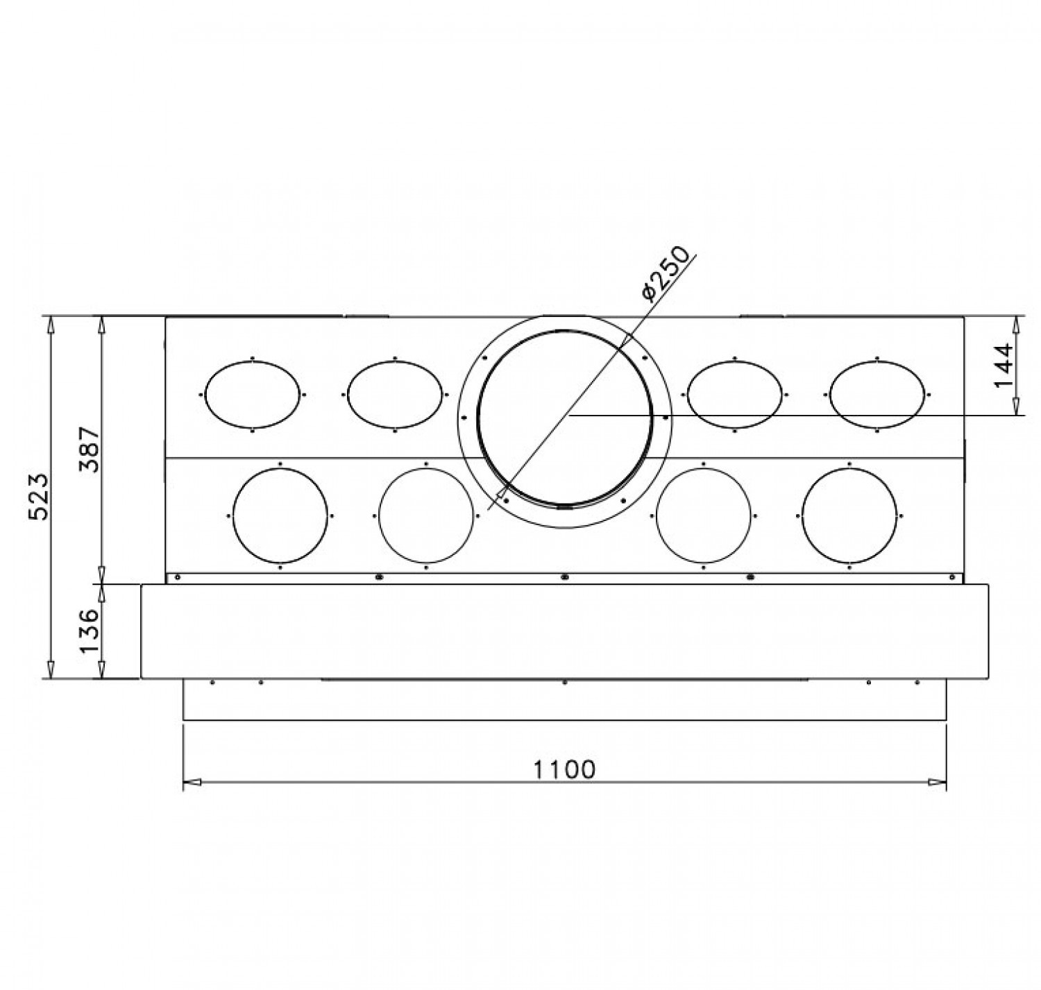 Односторонняя стальная топка с плоским стеклом. Дверца с подьемом вверх.