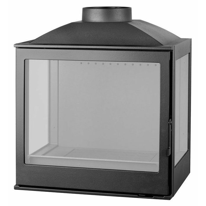 Каминная топка с дымосборником. Два боковых стекла. Цвет - черный.