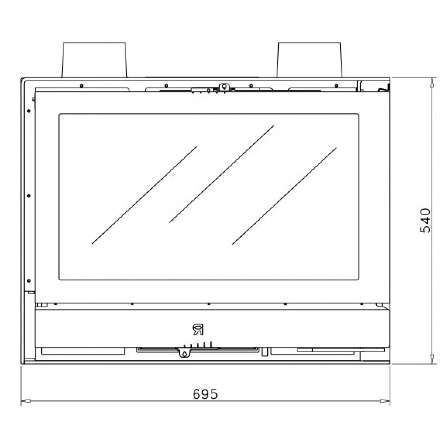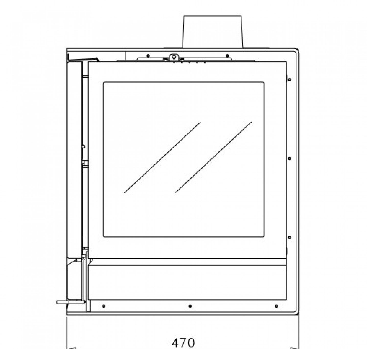 Стальной вертикальный инсерт с первичным и вторичным регистром подачи воздуха, благодаря чему перед попаданием в очаг воздух сначала прогревается.