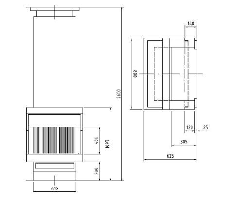 Цена указана за камин в стандартном исполнении (см. чертеж).