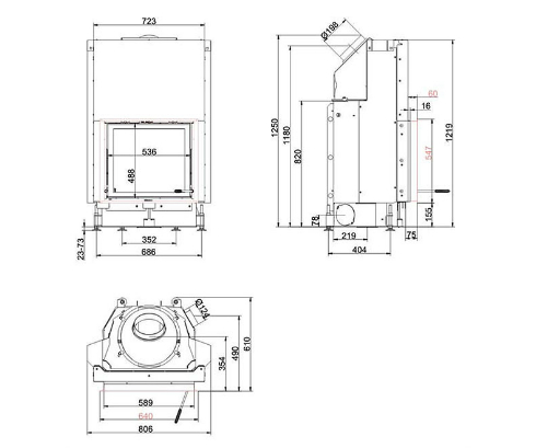 Топка КК 51/55 с подъемом с одним плоским стеклом - 1 шт.
