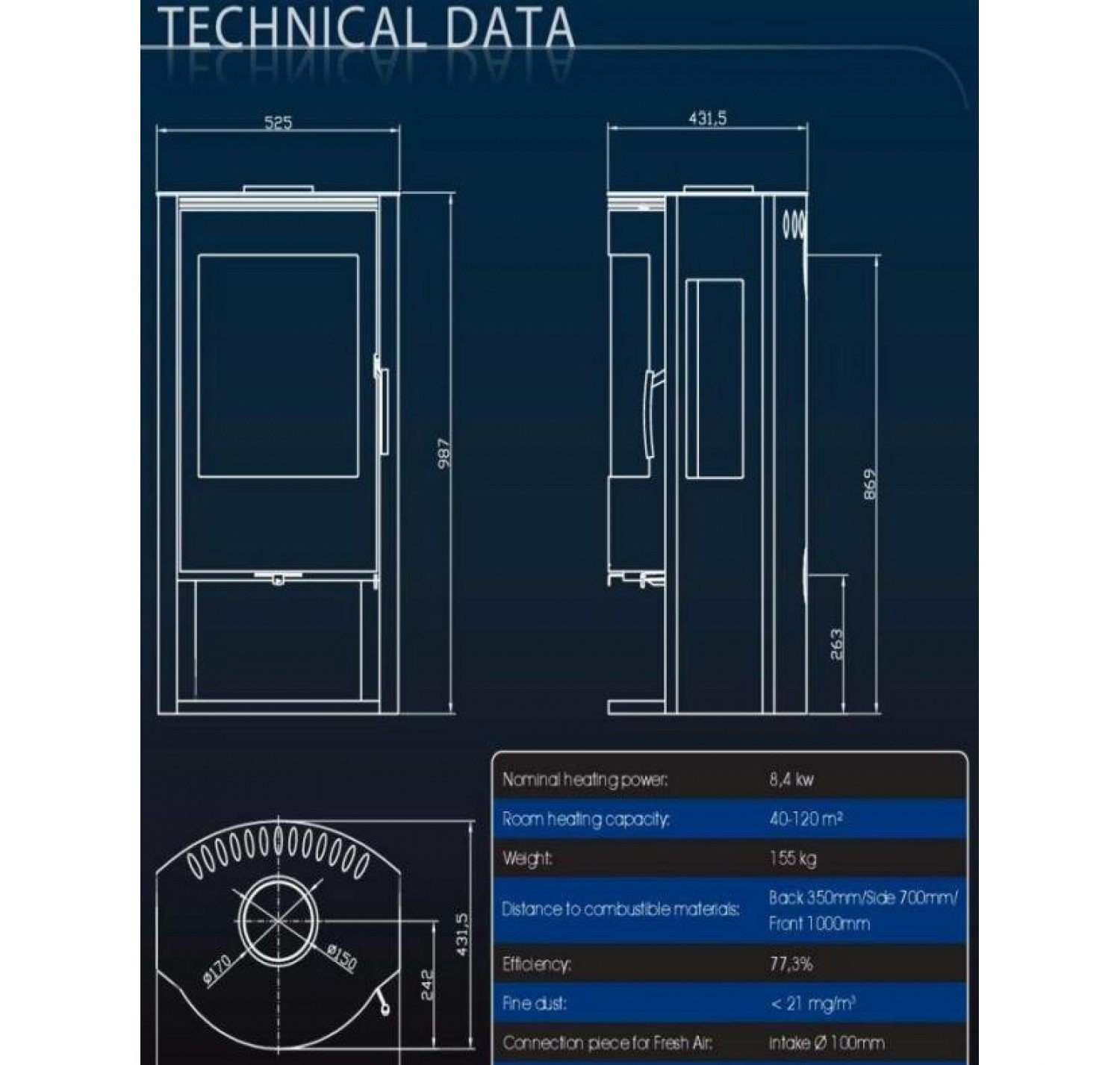 • Диаметр дымохода, (мм)