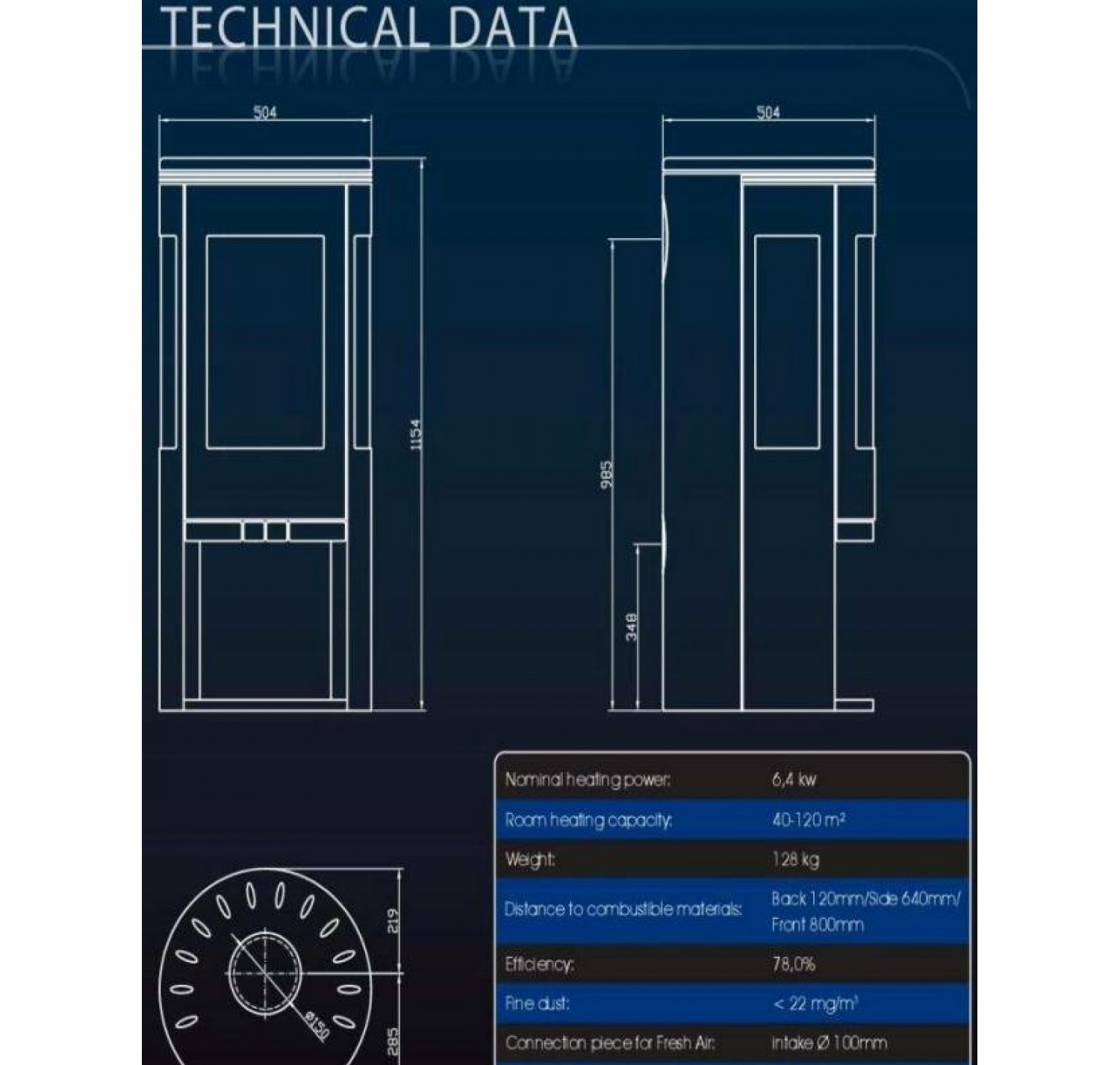 - Диаметр дымохода, (мм) 150 мм.