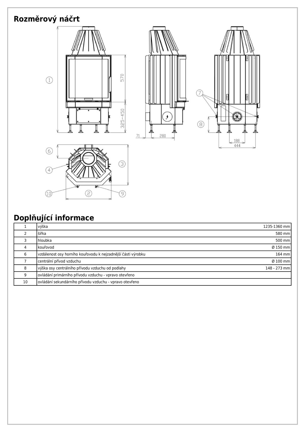 - Диаметр дымохода, (мм) 150