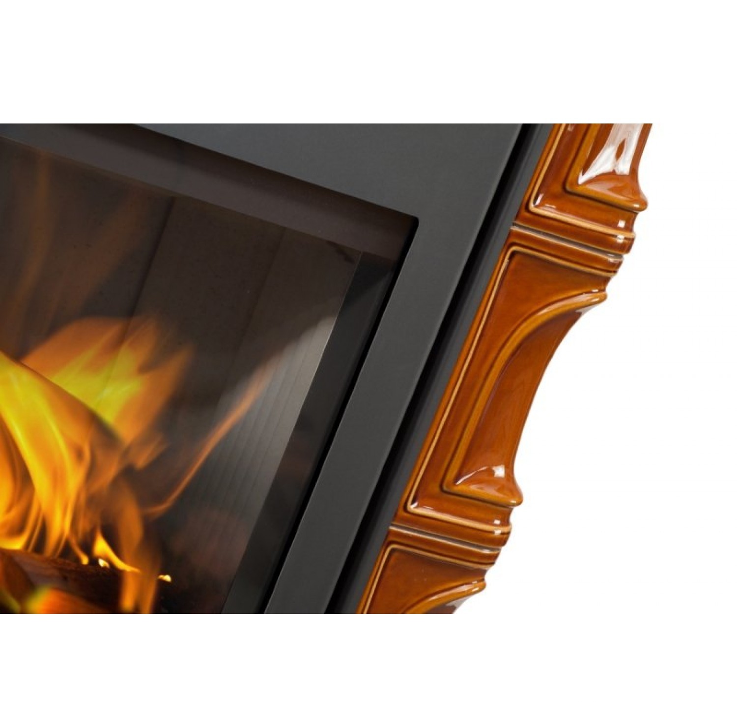 Каминная печь «ALAKO H» на фотографии имеет керамическую облицовку в глазури 65600.