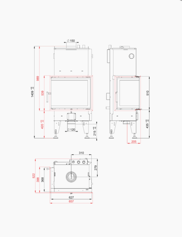 - Диаметр дымохода, (мм) 150