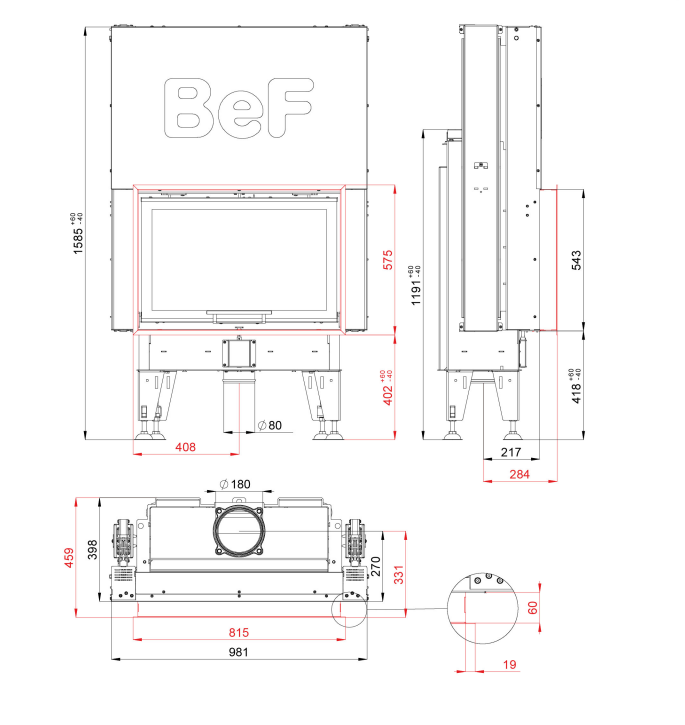 Каминная топка BeF Passive V 8