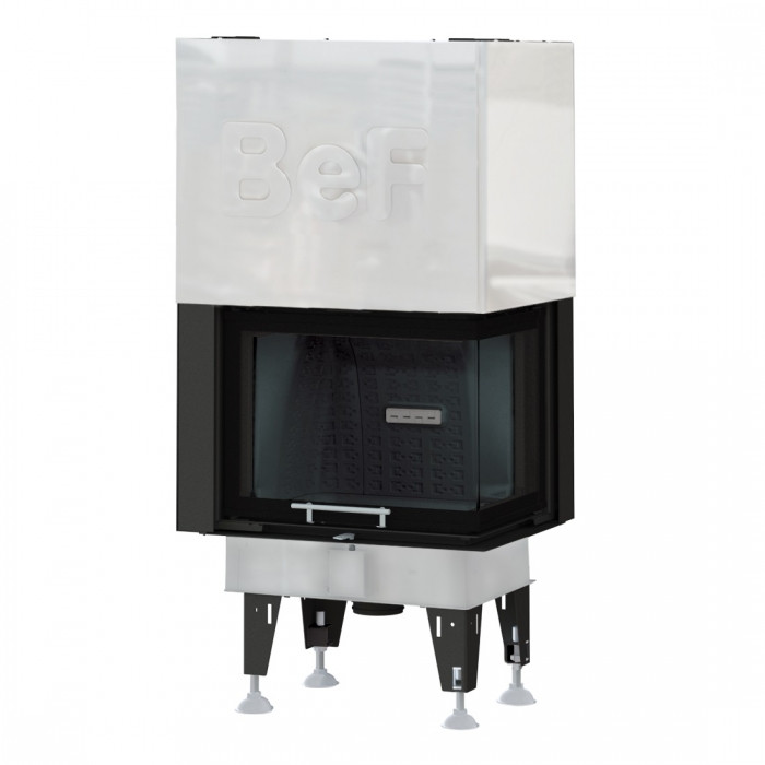 Угловая каминная топка BeF Royal V 8 CP с Г-образной формой дверцы и подъемом – это европейская современная модель предназначенная для работы на сухих дровах лиственных пород дерева или брикетах.