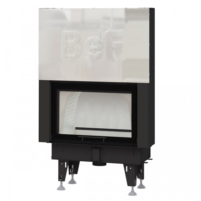 Каминная топка BeF Twin V 8 N II с возможностью прикладывания топлива со смежного помещения. Одна дверца с открытием в сторону стальная, другая - гильотина.