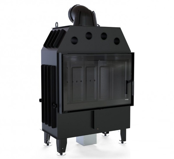 Изготовлена из стали с порошковым покрытием и имеет эффективность нагрева 80 %. Устройство с центральной подачей воздуха снаружи и возможностью ее регулировки. Специальная конструкция на трубе для подачи воздуха в топку, дает возможность изменить направление подачи воздуха на боковое. Плотно размещенные радиаторы способствуют передачи больше тепла окружающей среде, а воздуховоды повышают эффективность камина. Модель оборудована жаростойким стеклом, что выдерживает температуру до 800 °С.