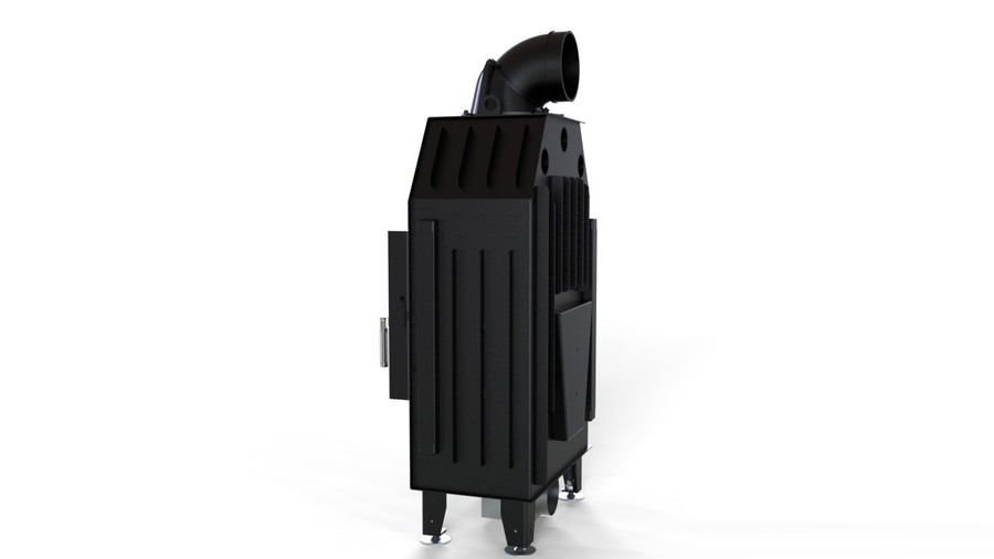 Модель изготовлена из стали с порошковым покрытием. Устройство с центральной подачей воздуха снаружи и возможностью ее регулировки. Специальная конструкция на трубе для подачи воздуха в топку, дает возможность изменить направление подачи воздуха на боковое. Плотно размещенные радиаторы способствуют передачи больше тепла окружающей среде, а воздуховоды повышают эффективность камина.