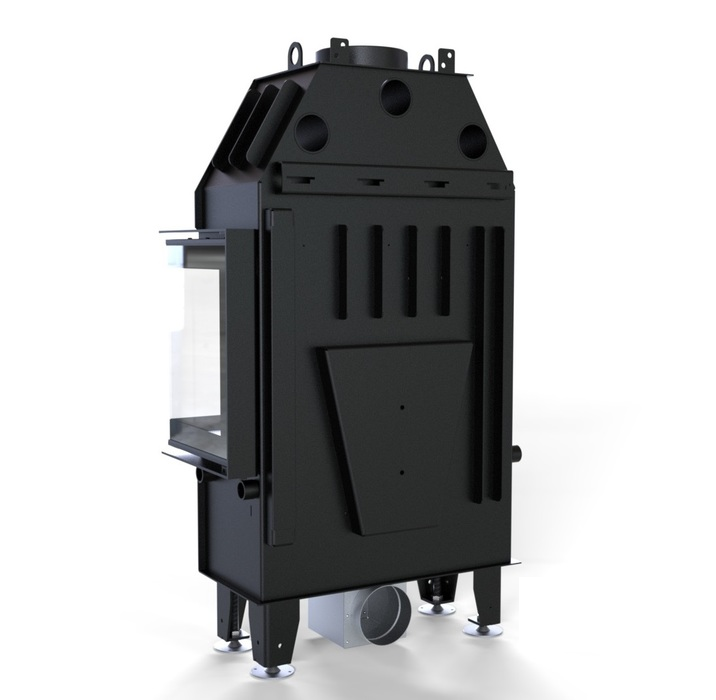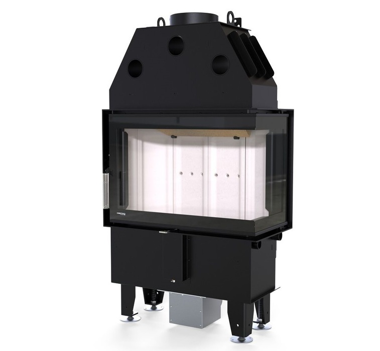 Изготовлена из стали с порошковым покрытием и имеет эффективность нагрева 78 %. Устройство с центральной подачей воздуха снаружи и возможностью ее регулировки. Специальная конструкция на трубе для подачи воздуха в топку, дает возможность изменить направление подачи воздуха на боковое. Плотно размещенные радиаторы способствуют передачи больше тепла окружающей среде, а воздуховоды повышают эффективность камина.