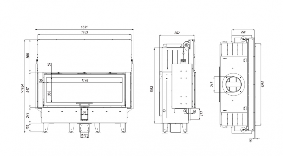 Имеет самый большой размер ширины топочной камеры, это позволяет устанавливать камин в просторных гостиных. Корпус выполнен из котловой стали, кожух гильотины из нержавеющей, регулируемые ножки позволят легко установить топку по уровню. Внутри топочная камера футерована панелями из керамического сплава Керамитон белого цвета, имеет подовое горение, но есть колосниковая решетка, под которой расположен контейнер для сбора пепла. Вторичный дожег дымовых газов и направленные потоки воздуха вдоль стекла, позволяют дольше работать камину на одной закладке дров и любоваться огнем через чистое стекло.