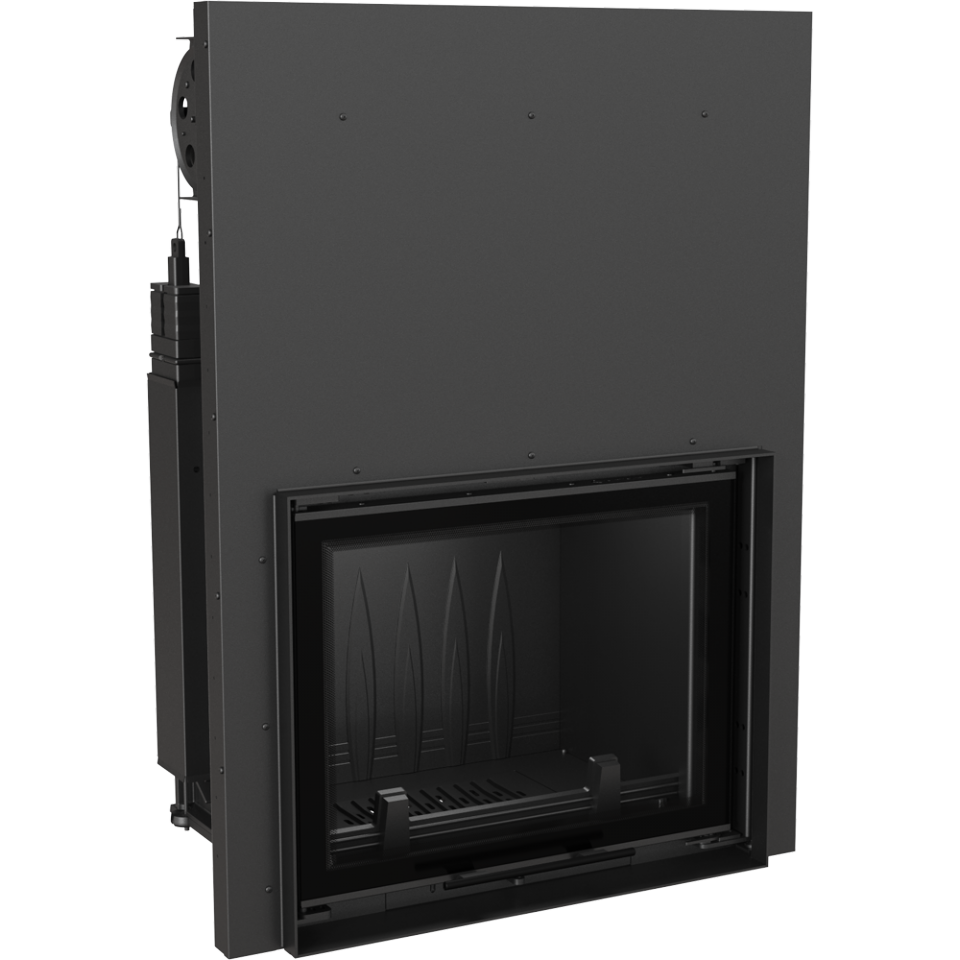 - Дверцы топки работают в системе lift up - стеклянная панель поднимается вверх. Эта система была построена, опираясь в противовес - два блока (по обоим сторонам двери) со стальной рейкой работают в направляющих на двух несущих роликах, благодаря чему вес двери равномерно распределяется. Они движутся вдоль на огнеупорных роликах, установленных в дверной раме, что гарантирует их лёгкое, тихое и бесперебойное функционирование. Движение дверец происходит на расстоянии пару миллиметров от корпуса, что предотвращает повреждение герметизации. Дверцы, которые закрываются, с большой силой погружаются в дверную раму, благодаря чему камера сгорания есть полностью герметичной.