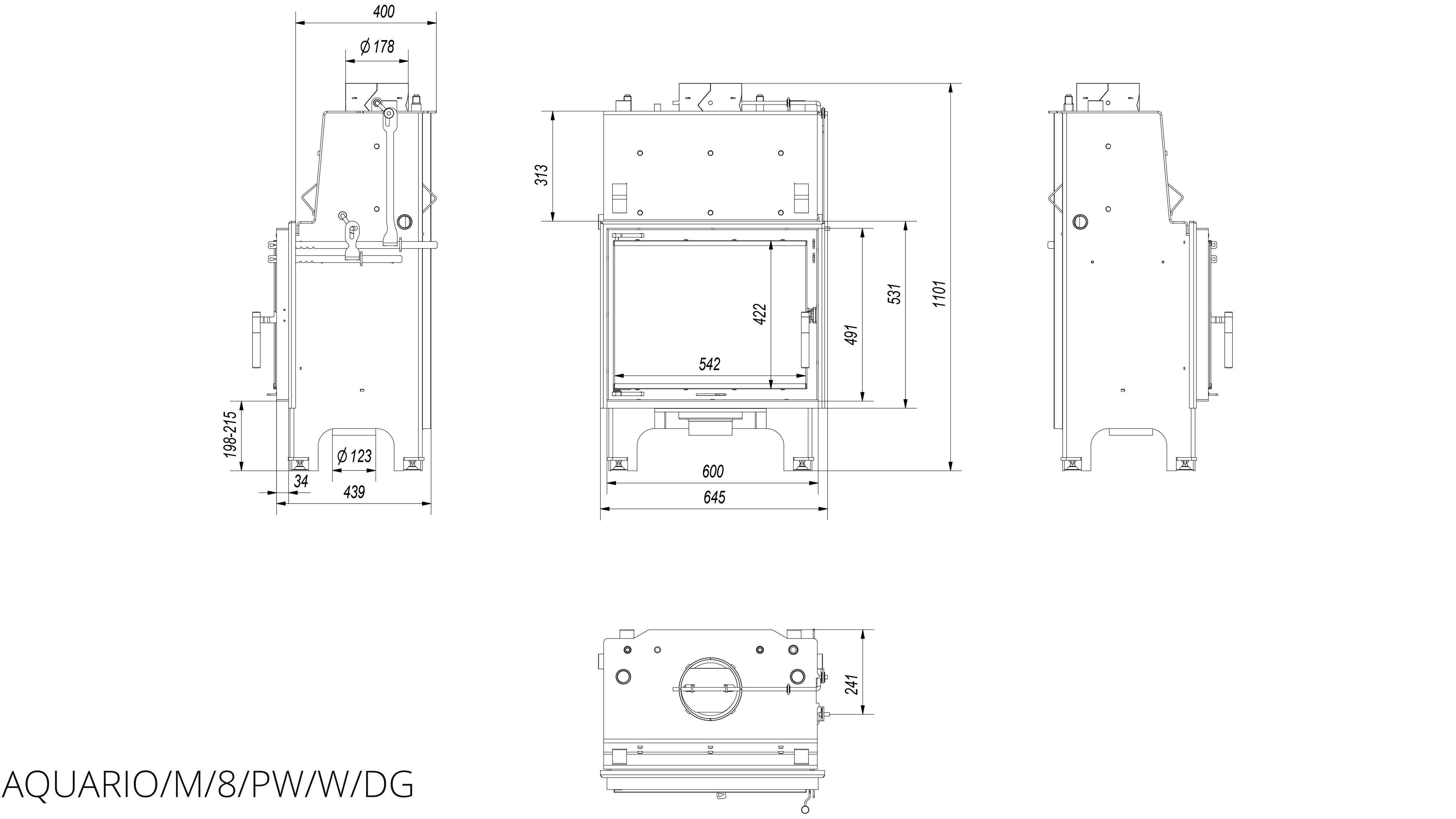 Каминная топка Kratki Aquario/M/8/PW/W/DG