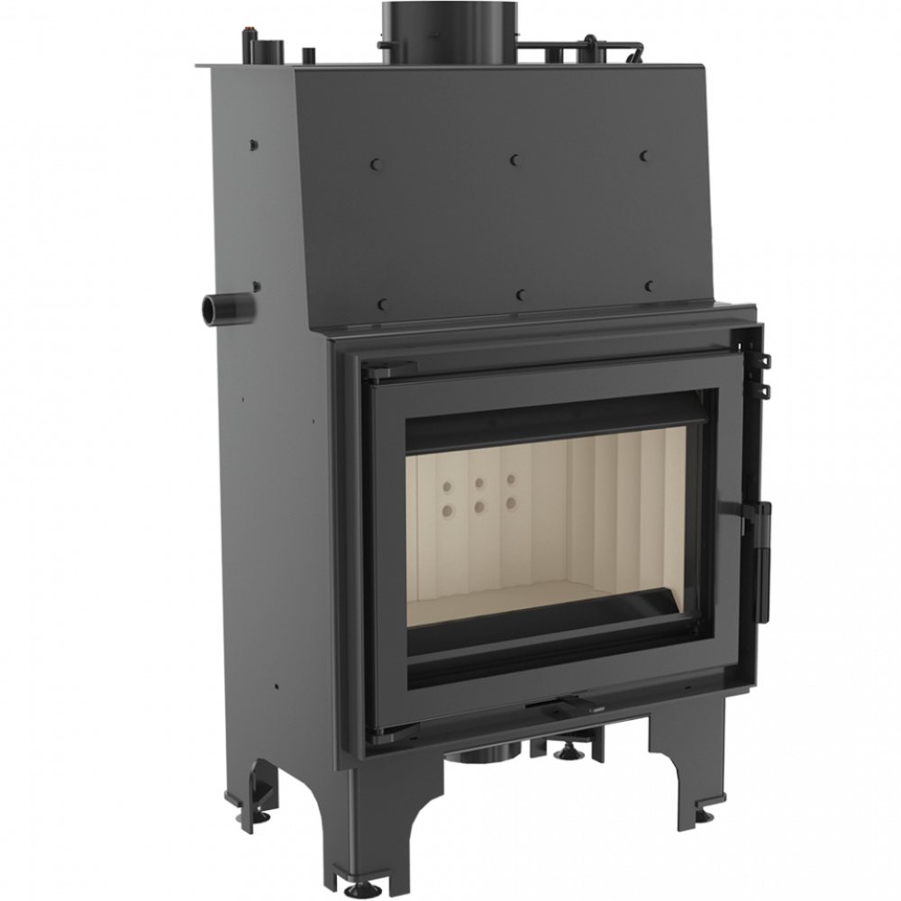 - Топка Aquario - это устройство с водяным контуром, который имеет встроенный корпус из двойных, стальных стен. Пространство между ними заполняется водой, которая получает тепло и передает его радиаторной установке. Камин характеризуется эффективным сжиганием и длительным поддержанием температуры благодаря облицовке камеры сгорания TERMOTEC - материалом, который накапливает тепло, и повышает температуру камеры сгорания. Увеличена поверхность теплообмена в топке возникает в связи с встроенным и высоким переходом из камина в дымоход. Более экологическое сгорание благодаря системе двух дефлекторов, употребление которых продлевает время прохождения дымовых газов.