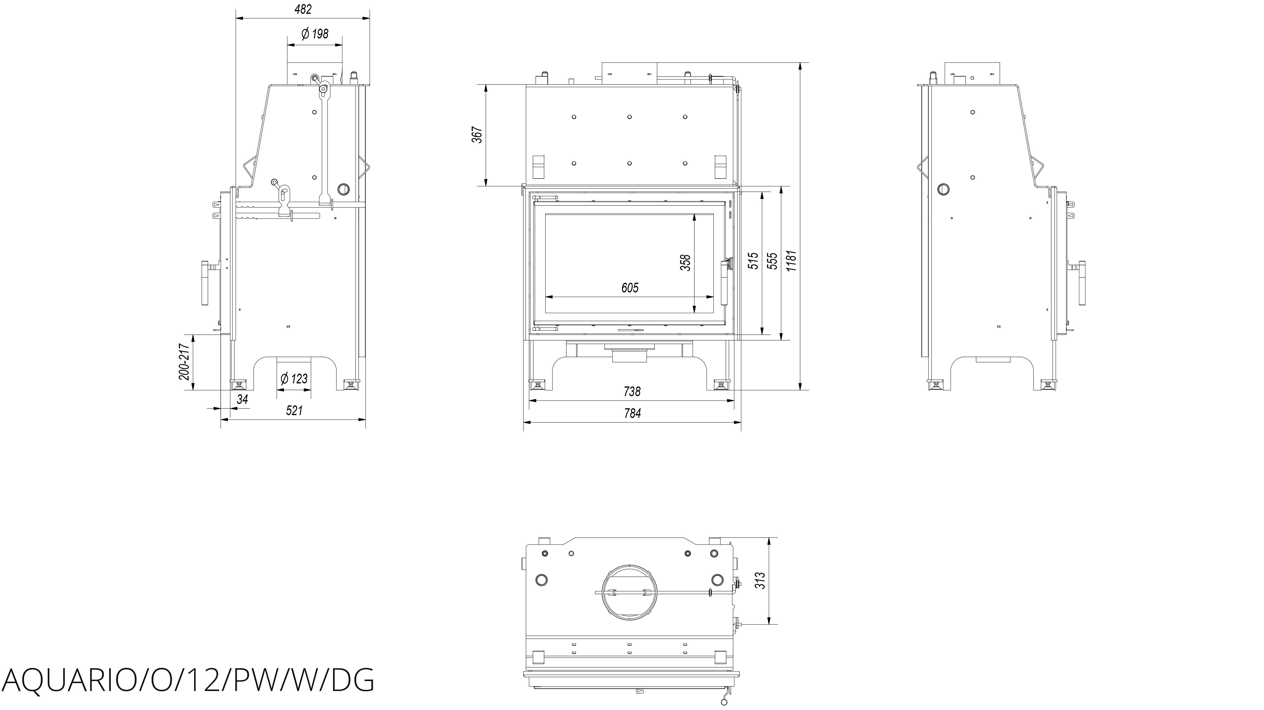Каминная топка Kratki Aquario/O/12/PW/W/DG