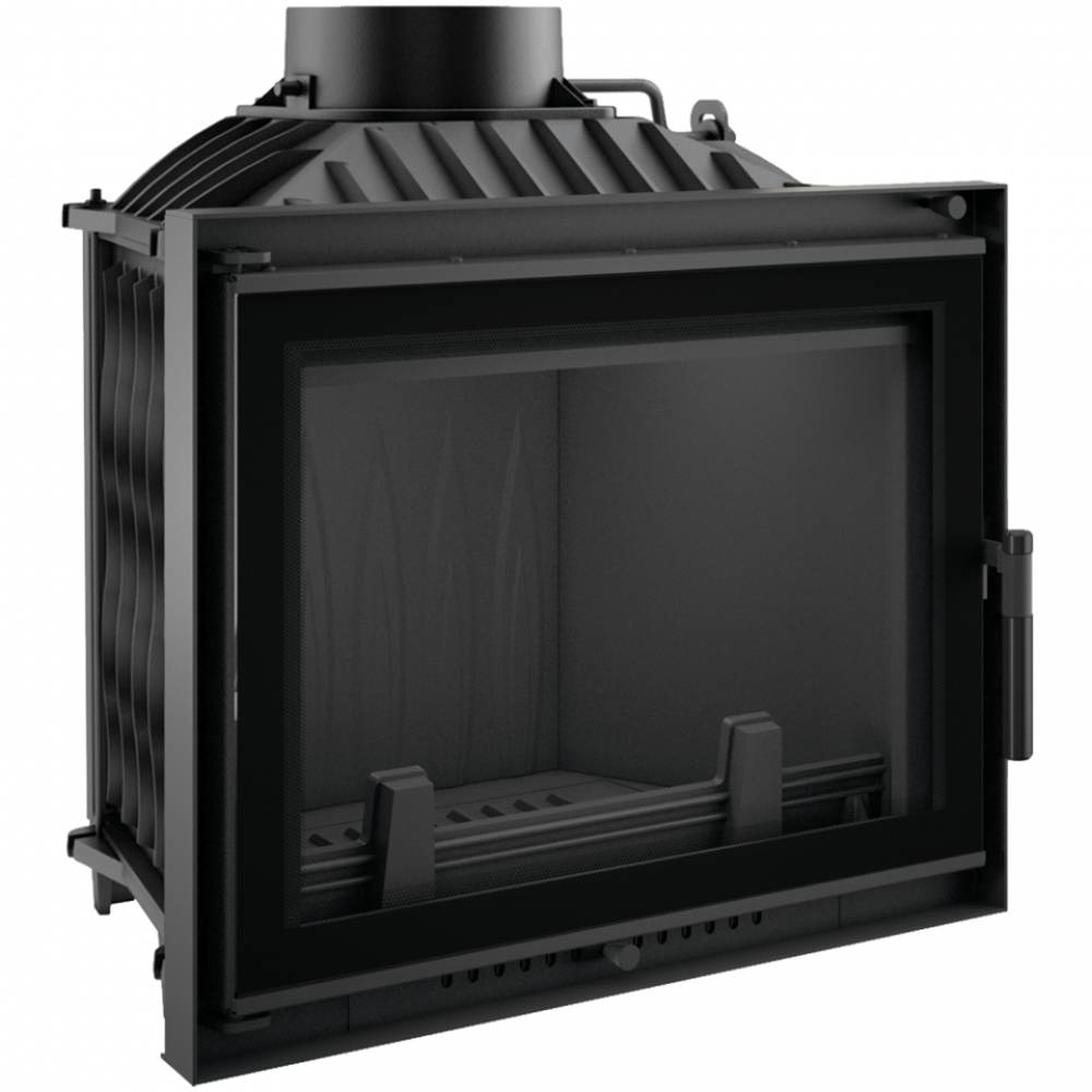 У данной модели дровяной топки предусмотрена система обдува стекла вторичным воздухом. Это сделано для того, чтобы пепел и сажа не оседали на стекле (чтобы стекло не теряло прозрачность). Из особенностей данной модели можно отметить декоративную заднюю плиту, наличие держателя для дров, высокую герметичность топочной камеры (уплотнение из графитовых шнуров).