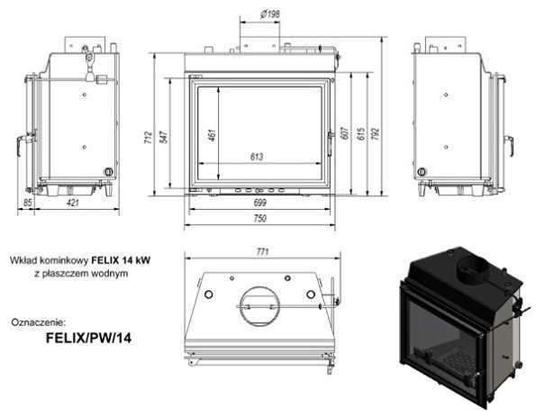 Встраиваемая каминная топка Kratki Felix/PW/14/W средней производительности с широким плоским стеклом и встроенным теплообменником (с водяным контуром). Имеет множество стандартных «функций», а кроме этого большой выбор дополнительных опций.