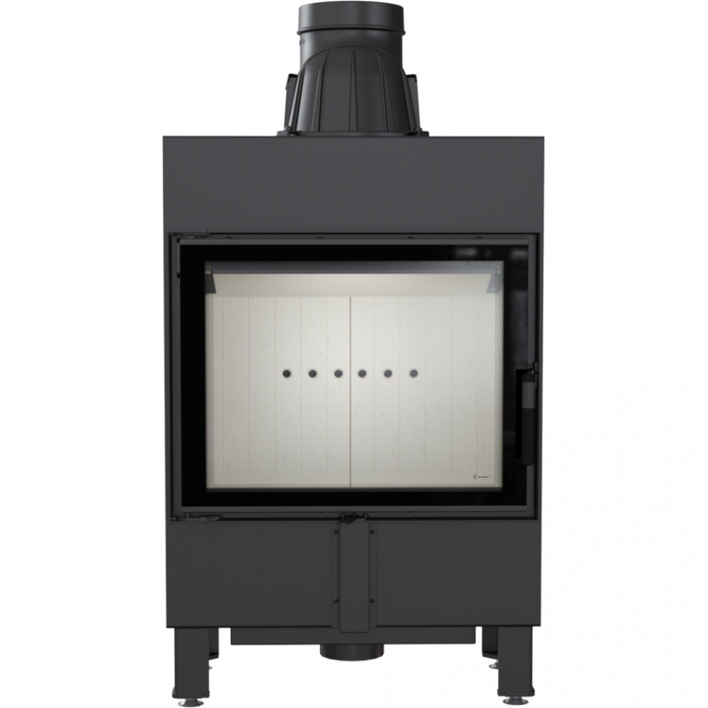 • Модель оснащена подвижным дымоходным отверстием, так что во время монтажа нет необходимости покупать дополнительные колена. Можно легко подобрать угол подключения топки к каминной инсталляции.