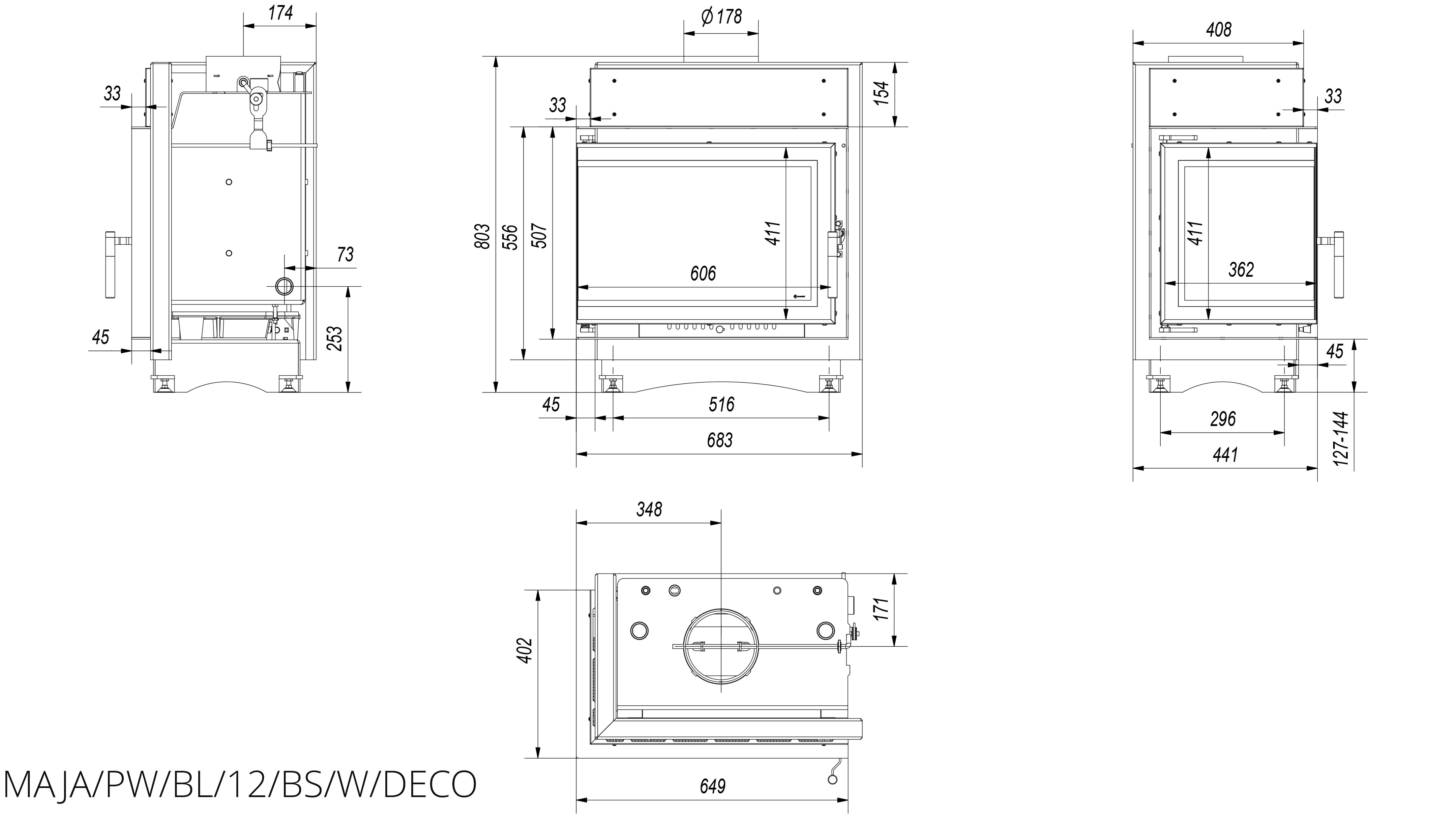 Каминная топка Kratki Maja/PW/BL/12/BS/W/Deco