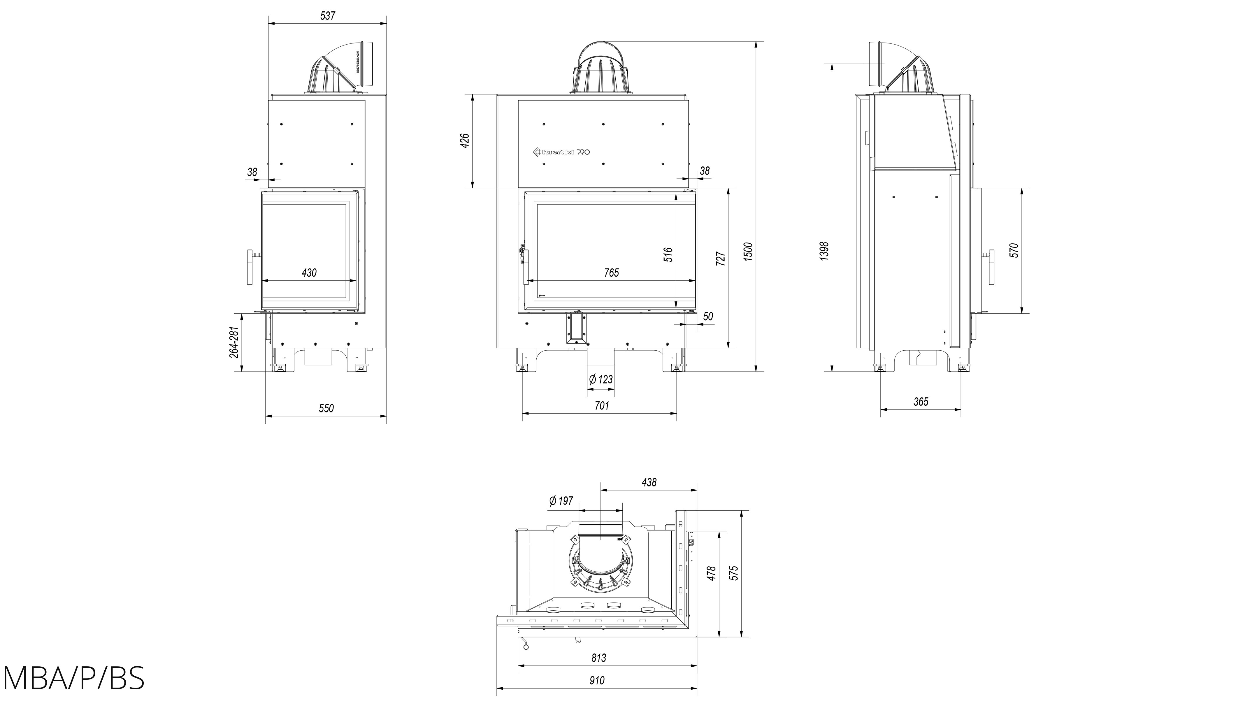 Каминная топка Kratki MBA/P/BS