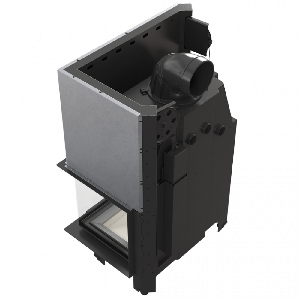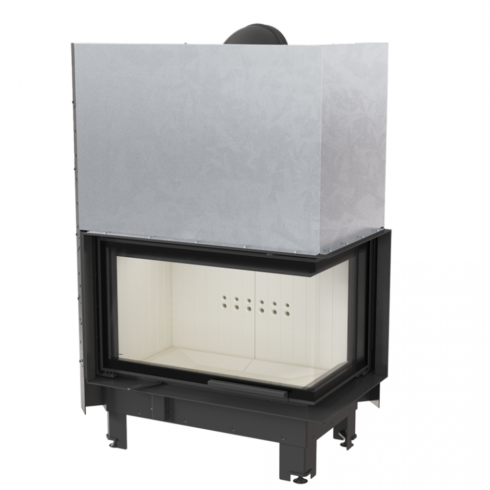 Стальная каминная топка Kratki MBO/P/BS/G/SG (Г-образное стекло справа, гильотина) предназначена для монтажа камина угловой конструкции. Большая камера сгорания футерована современной керамикой Acumotte и прикрыта двухсторонним просмотровым стеклом. В камине реализован принцип подового горения. Для удобства прибор оснащен дымоходом с поворотным регулированием.