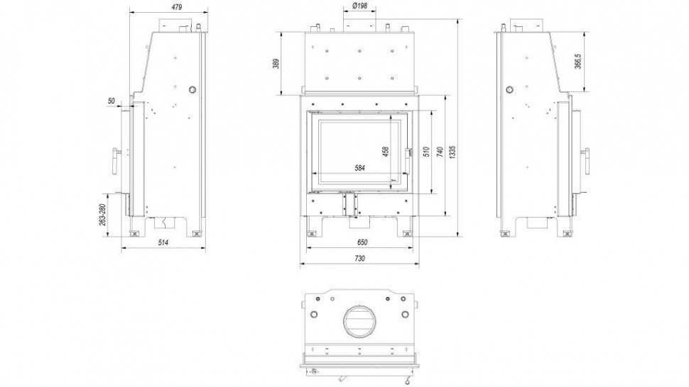 - Дверь каминной топки декорирована стеклом, которое выдерживает температуру до 750 градусов