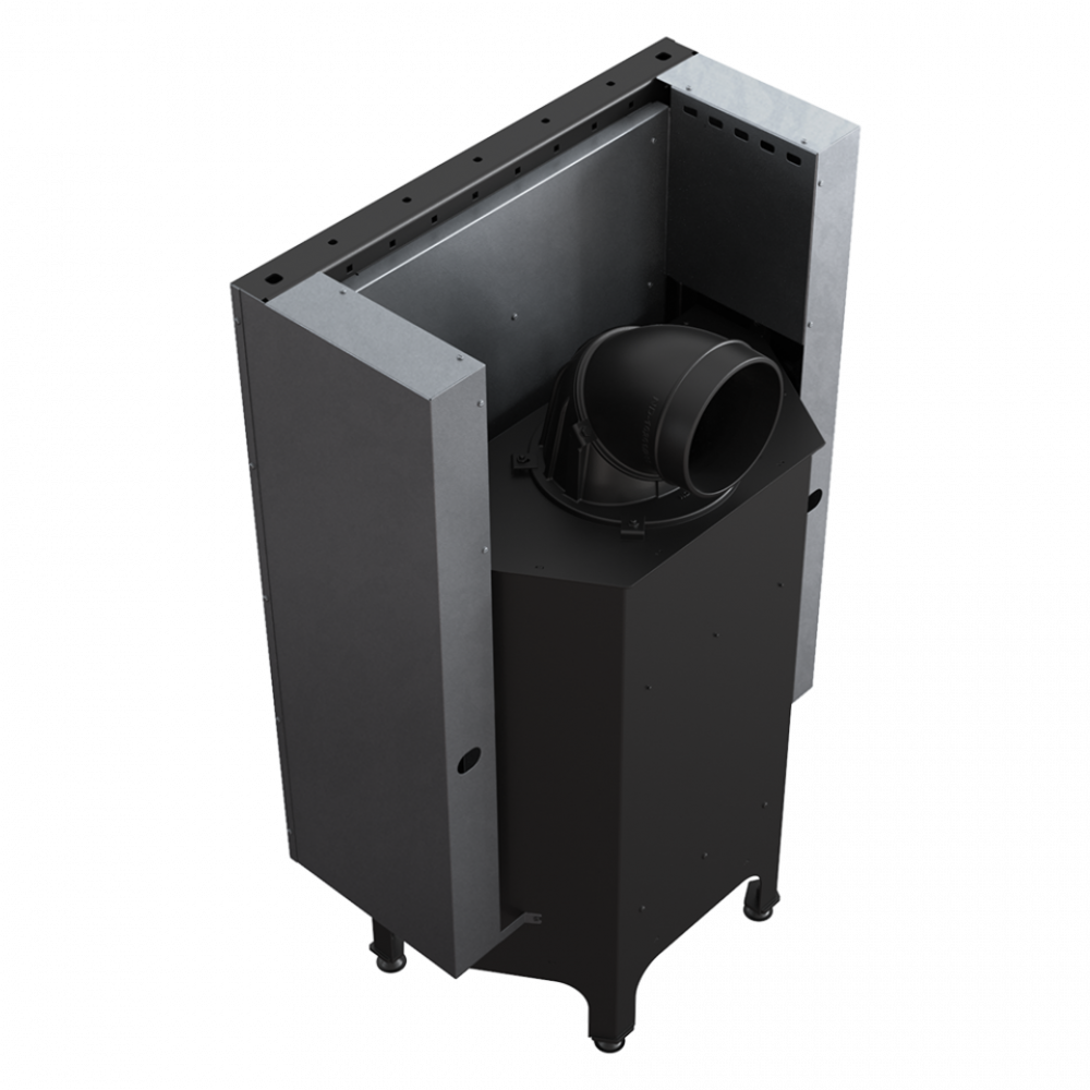 - Можно применять при различных монтажных условиях благодаря регулируемым ножкам и подвижному дымоходному отверстию с регулировкой установки 360°.