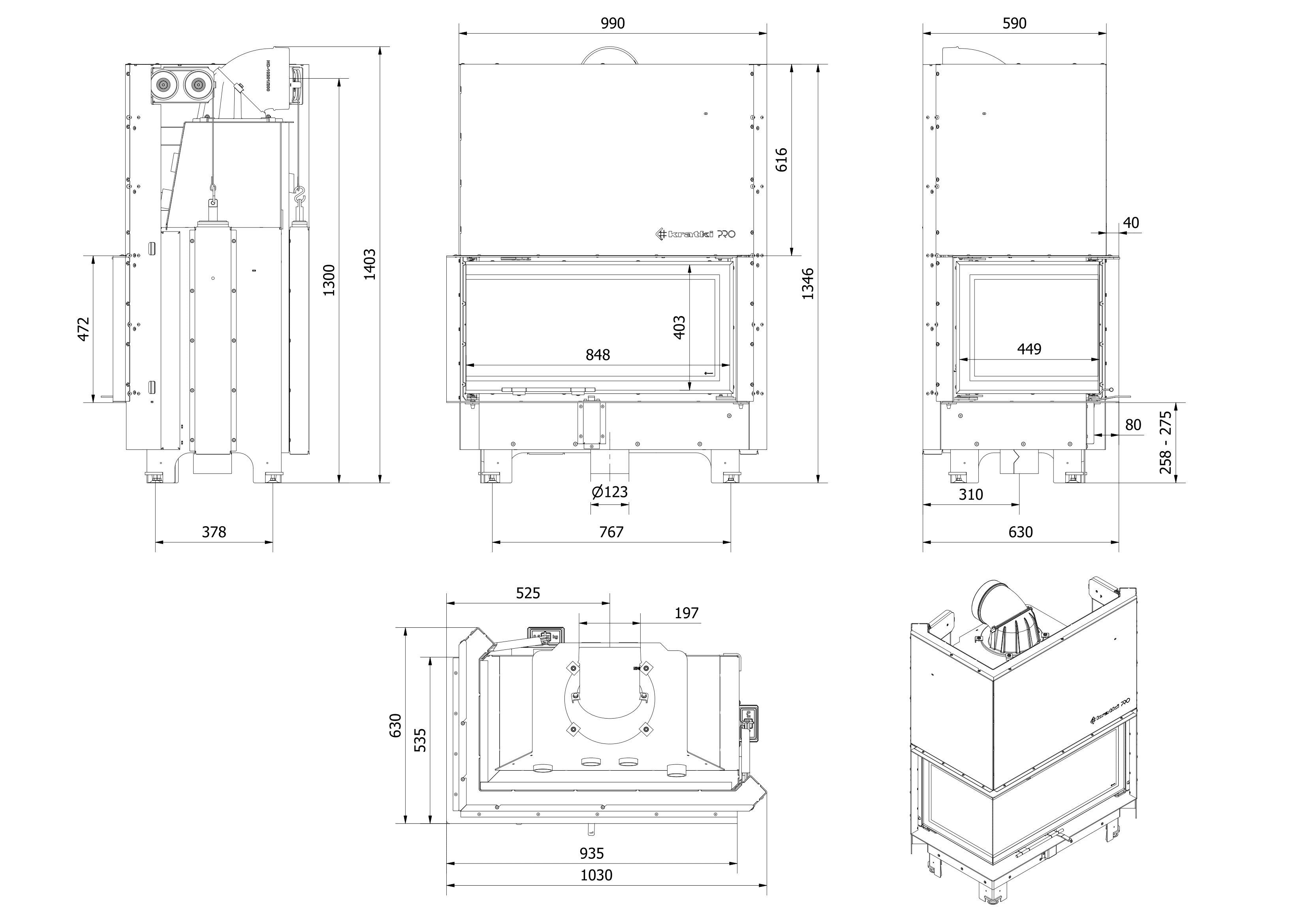Предназначается для установки в угол помещения, для этого она оснащена большим Г-образным окном из жаропрочной стеклокерамики. Особенность данной модели является вертикальный подъем дверцы для закладки дров, что соответствует современным тенденциям в мире каминостроения.