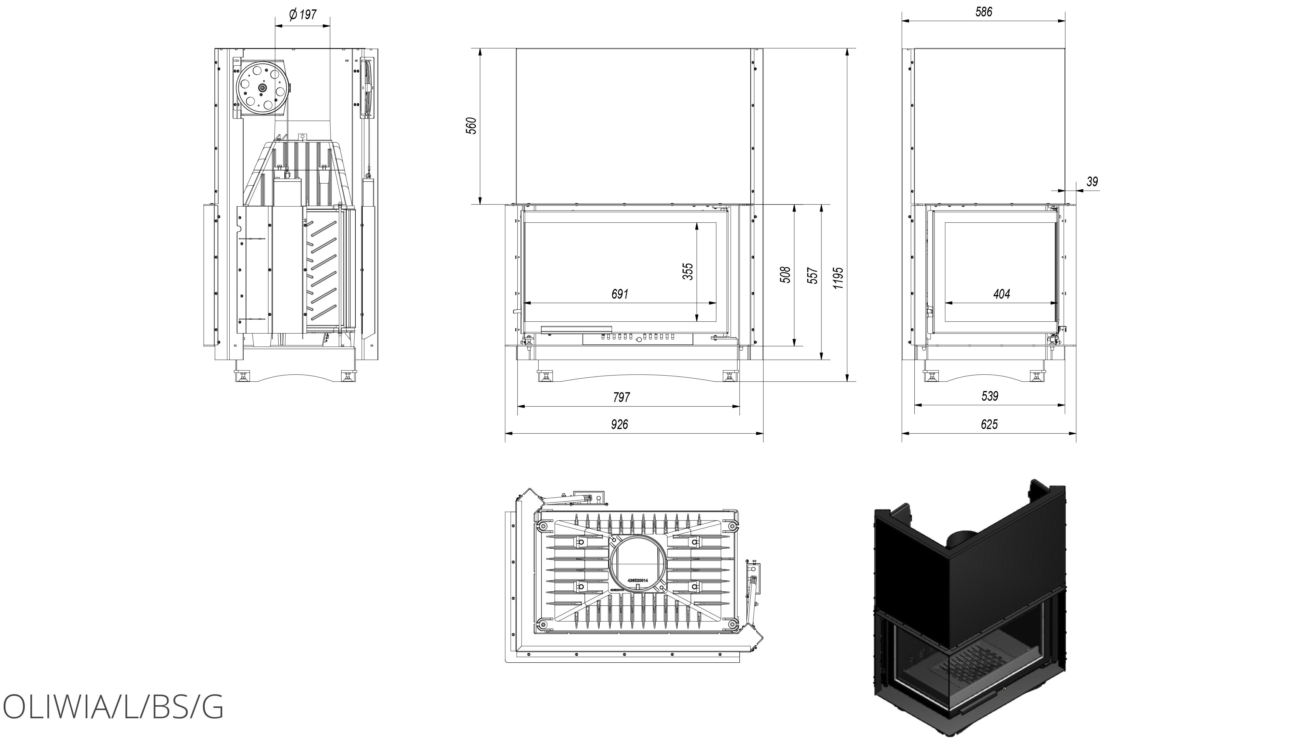 Каминная топка Kratki Oliwia/L/BS/G (Г-образное стекло слева, гильотина) для угловых либо пристенных каминов. Особенно оригинально топка будет выглядеть в комплекте с угловыми каминами. Мощность прибора высокая, достигающая 18 кВт, что позволяет отапливать большие жилые пространства.