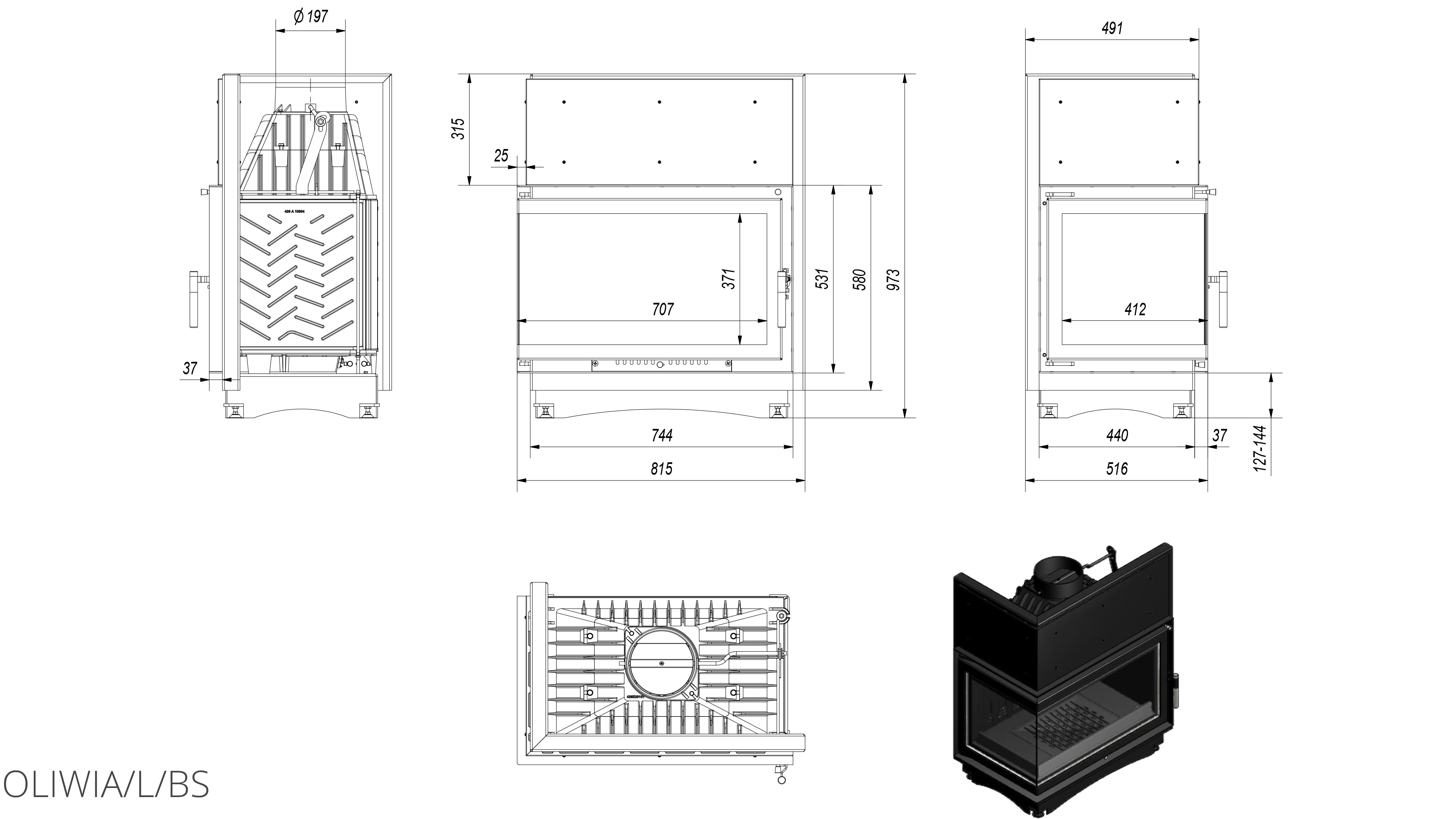 Каминная топка Kratki Oliwia/L/BS (Г-образное стекло слева) для угловых либо пристенных каминов. Особенно оригинально топка будет выглядеть в комплекте с угловыми каминами. Мощность прибора высокая, достигающая 18 кВт, что позволяет отапливать большие жилые пространства.