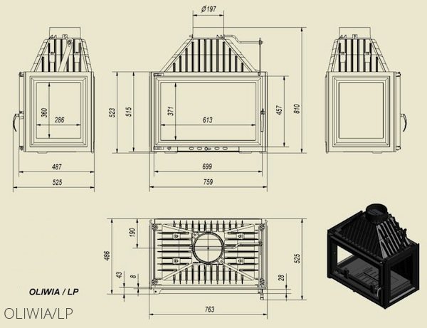 Каминная топка Kratki Oliwia/LPс двумя боковыми стеклами отлита из серого чугуна. Модель обладает высокой мощьностью (18 кВт), что вполне достаточно, чтобы согреть дом площадью 150-180 м2. Ребра на топке увеличивают поверхность нагрева.